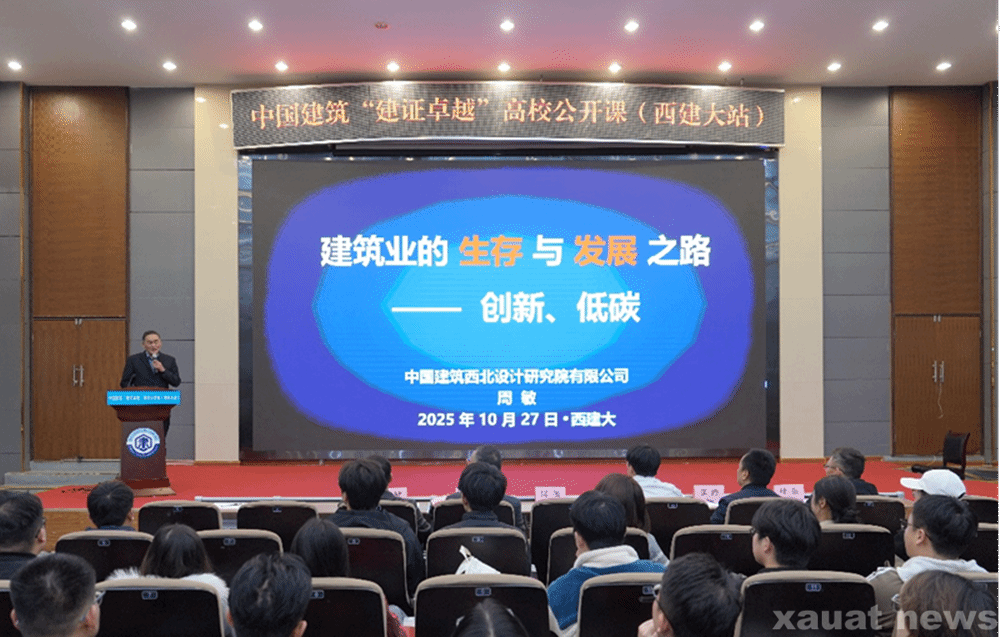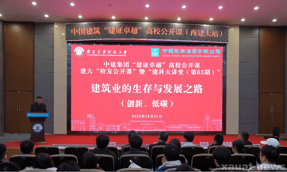 建大新闻网讯    10月27日,由西安建筑科技大学学生工作部和中国建筑集团有限公司党校联合举办的“建证卓越”高校公开课,在我校土木楼516报告厅顺利开展。本期活动由我校大学生就业指导服务中心主办,建筑设备科学与工程学院承办,聚焦建筑业未来发展,旨在搭建校企对话平台,深化产学研融合。