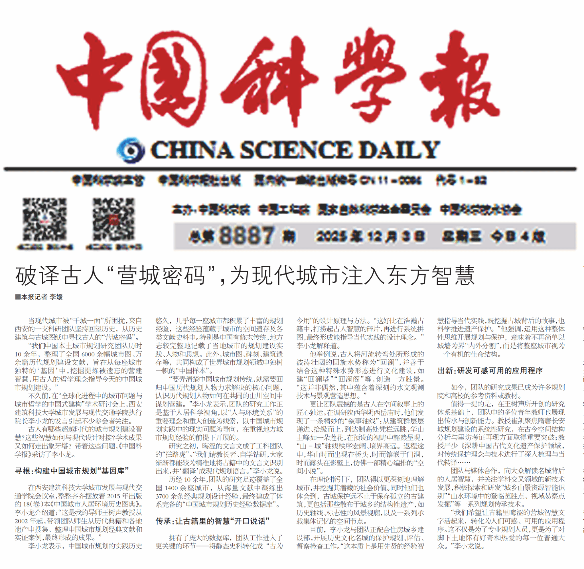 古人有哪些超越时代的城市规划建设智慧?这些智慧如何与现代设计对接?学术成果又如何走出象牙塔?带着这些问题,《中国科学报》采访了李小龙。