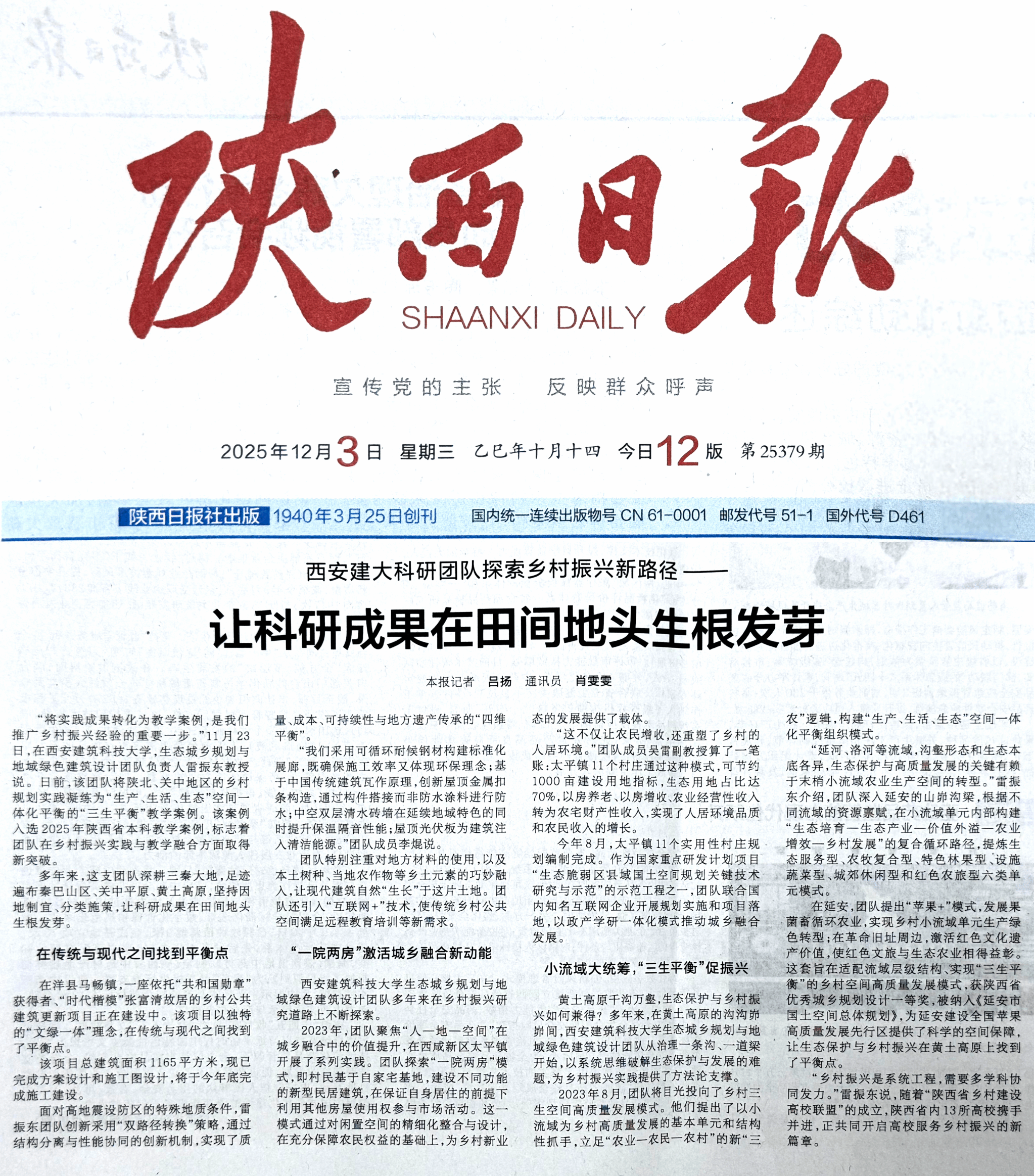 “将实践成果转化为教学案例,是我们推广乡村振兴经验的重要一步。”11月23日,在西安建筑科技大学,生态城乡规划与地域绿色建筑设计团队负责人雷振东教授说。日前,该团队将陕北、关中地区的乡村规划实践凝练为“生产、生活、生态”空间一体化平衡的“三生平衡”教学案例。该案例入选2025年陕西省本科教学案例,标志着团队在乡村振兴实践与教学融合方面取得新突破。