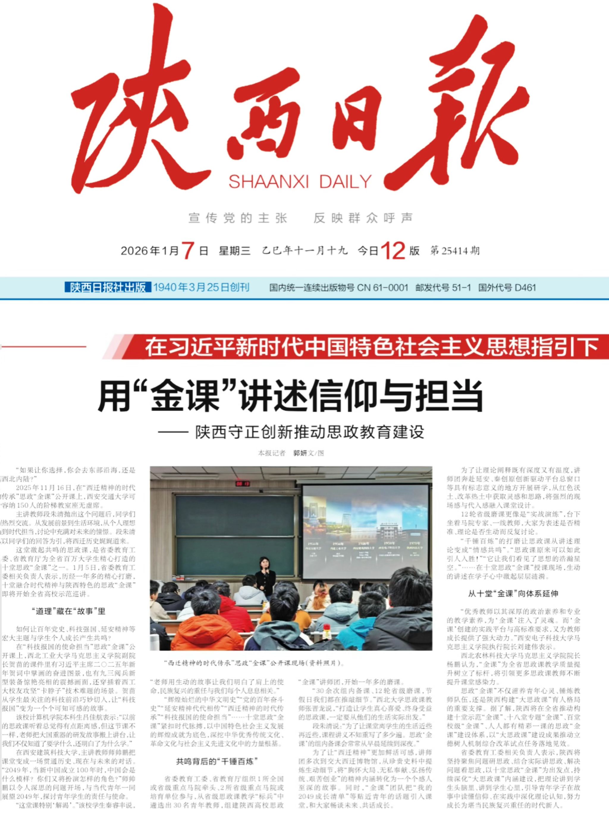 这堂激起共鸣的思政课,是省委教育工委、省教育厅为全省百万大学生精心打造的十堂思政“金课”之一。1月5日,省委教育工委相关负责人表示,历经一年多的精心打磨,十堂融合时代精神与陕西特色的思政“金课”即将开始全省高校示范巡讲。