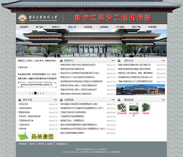 本着服务广大教职员工,政务公开接受监督,上下一心共谋发展的原则,新校区工程建设指挥部网站正式改版。却顾所来径,苍苍横翠微,开工仪式仿佛还在昨日,新校区建设已经走过六个春夏。这是一期建设总结二期启动的节点,借网站之喉舌吐故纳新,看南山书院煜煜生辉,学府城襟怀坦荡,综合楼古色生香,紫阁书院亭亭玉立,教工公寓蔚为大观。