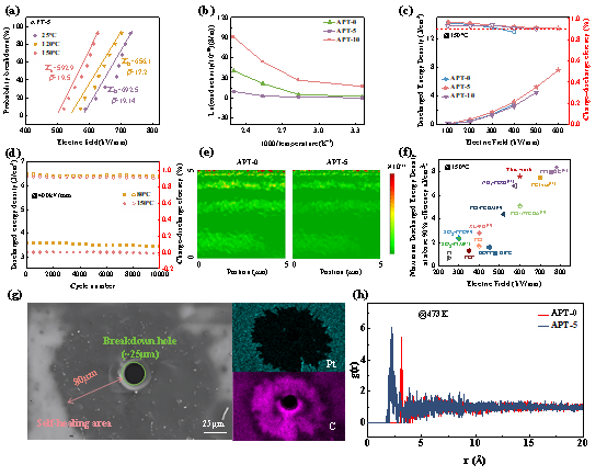 该聚合物薄膜在150℃高温环境下仍能保持7.6 J/cm³的高放电能量密度,其高温性能达到商用最佳BOPP薄膜室温性能的数倍,并在10000次充放电循环后仍保持稳定的储能性能。材料同时具备良好的击穿自愈性和结构完整性,本征热导系数达到0.396 W·m⁻¹·K⁻¹,显著抑制了高场循环运行时的热量积聚,提高了器件的可靠性和使用寿命。这一突破为极端热条件下薄膜电容器的应用提供了重要材料基础,在新能源汽车、电力电子和电磁能装备等领域展示出广阔前景。