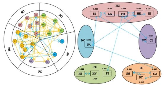 该研究基于可持续生计分析框架,系统考察了搬迁农户的生计资本构成及其相互作用机制。通过相关分析、图论模型与决策树算法,研究团队量化了自然资本、人力资本、社会资本、物质资本与金融资本五类资本间的权衡与协同关系,并据此构建了表征生计恢复力的指标体系。研究发现,自然资本对人力资本和社会资本表现出明显的权衡效应,其中与人力资本之间的负向关联尤为突出;物质资本与自然资本、金融资本及社会资本均呈协同关系,而与人力资本之间则同时存在权衡与协同两种作用;金融资本与物质资本、社会资本间为协同效应,与人力资本之间同样兼有协同与权衡;此外,物质资本、人力资本与社会资本三者之间形成了显著的协同网络。