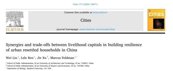 建大新闻网讯 近日,公共管理学院刘伟教授团队在国际权威期刊、学校认定公共管理类B级期刊Cities(中科院SCI一区TOP,JCR一区,影响因子6.7)发表题为“ Synergies and trade-offs between livelihood capitals in building resilience of urban resettled households in China”的研究论文。论文第一作者为我校刘伟教授,第二作者为我校硕士生任乐乐,第三作者为西安财经大学教师徐洁,通讯作者为斯坦福大学Marcus Feldman教授。