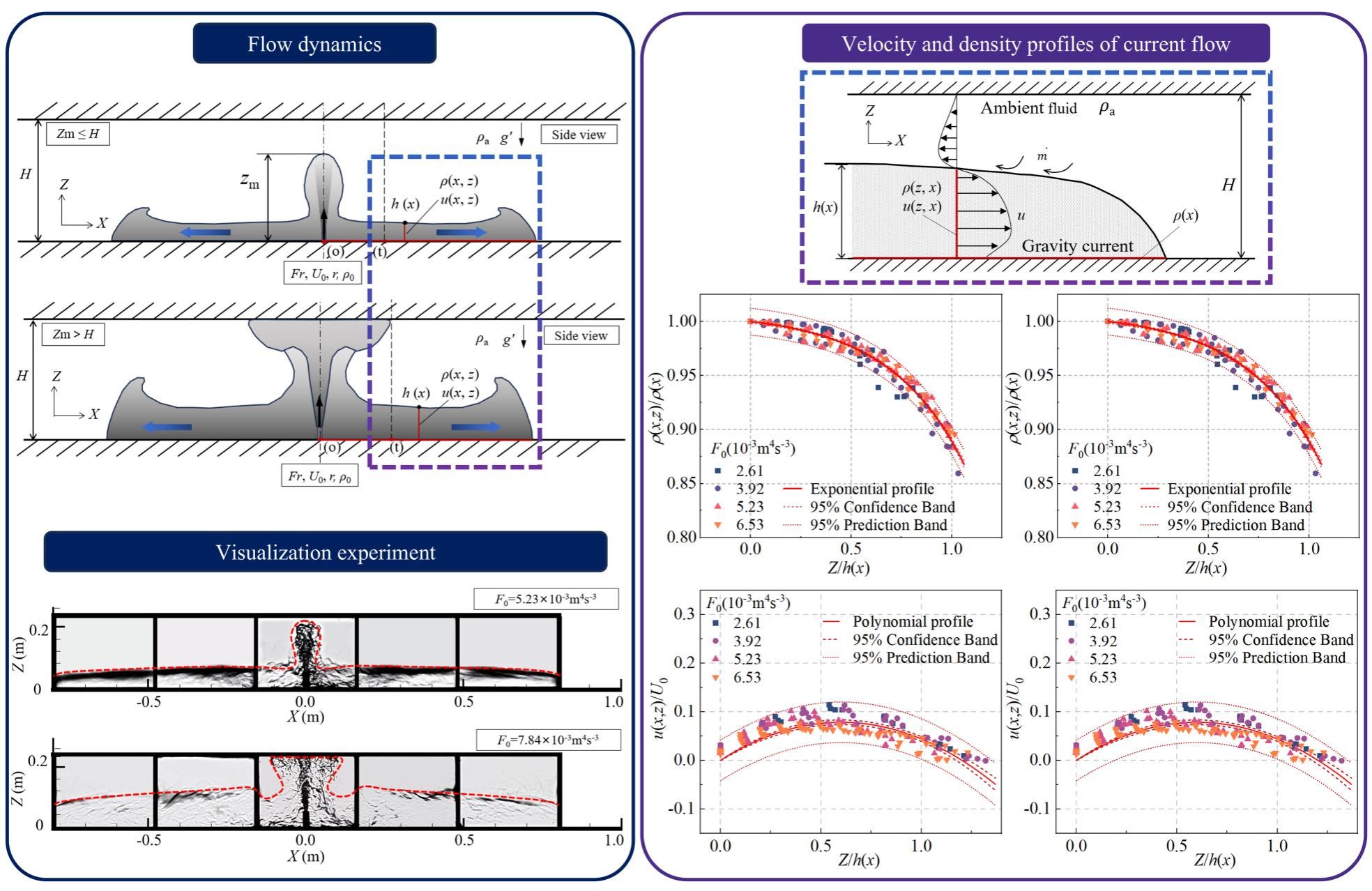 该研究针对地下及封闭空间因重气(大密度气体)泄漏导致的窒息事故频发的重大安全事件,以隧道、洞库等狭长空间为对象,采用高速纹影实验与大涡模拟技术,系统研究了重气泄漏后的扩散、分层及卷吸机制。创新提出了“喷泉流”与“伞状流”两类典型流型,分析了相应流型下重气速度与密度的空间分布规律;建立了重气体积通量、动量通量与浮力通量的计算方法,并揭示了截面长宽比对流动特征参数的影响机制。