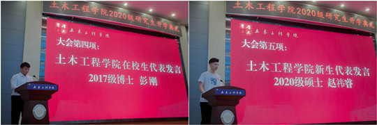 典礼仪式前,2020级研究生集体观看了来自校友徐赵东、冯世进、周颖,土木工程学院白国良等多位教授录制的寄语视频。各位校友、教授关心学院发展、关心学生成长,表达了对同学们的殷切期望,共同祝愿同学们“学有所成,不负韶华;乘风破浪,未来可期”。