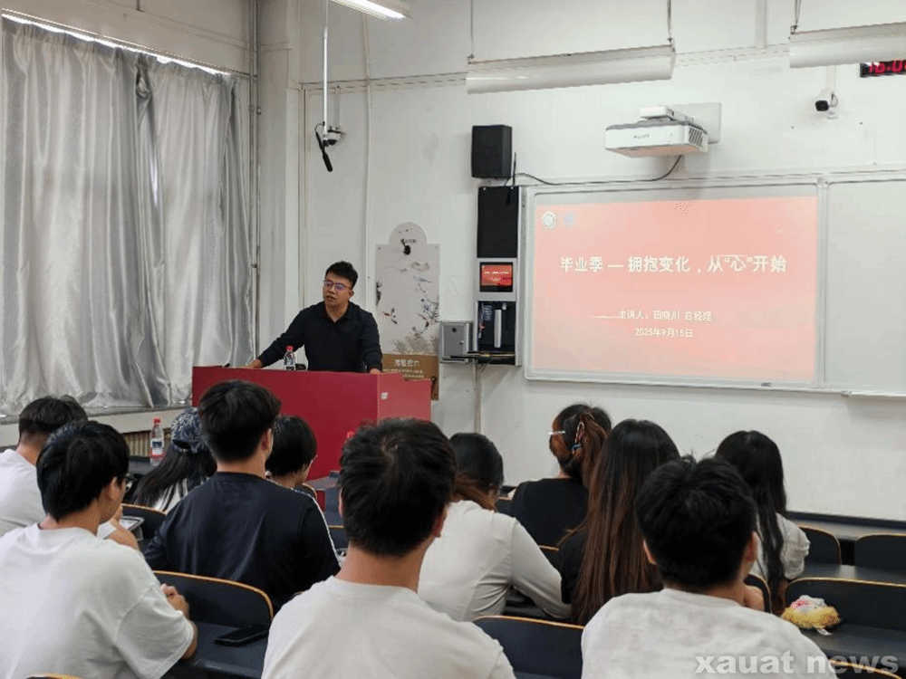 建大新闻网讯 9月15日下午,理学院在草堂校区16-208教室举办“毕业季——拥抱变化,从‘心’开始”职业发展报告会,助力2026届毕业生规划职场路径、提升就业竞争力。西安数盈地产总经理田晓川受邀主讲,毕业班师生听取了报告。