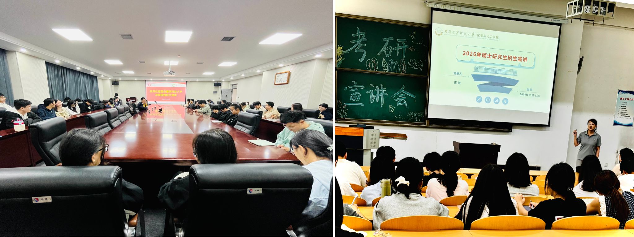 建大新闻网讯 近日,化学与化工学院副院长周军、王耀分别带队赴商洛学院、运城学院开展2026年硕士研究生招生宣讲。商洛学院化学工程与现代材料学院院长曹宝月、运城学院应用化学系党委副书记王士艳分别出席宣讲会,两所高等院校相关专业100余名师生参加会议。
