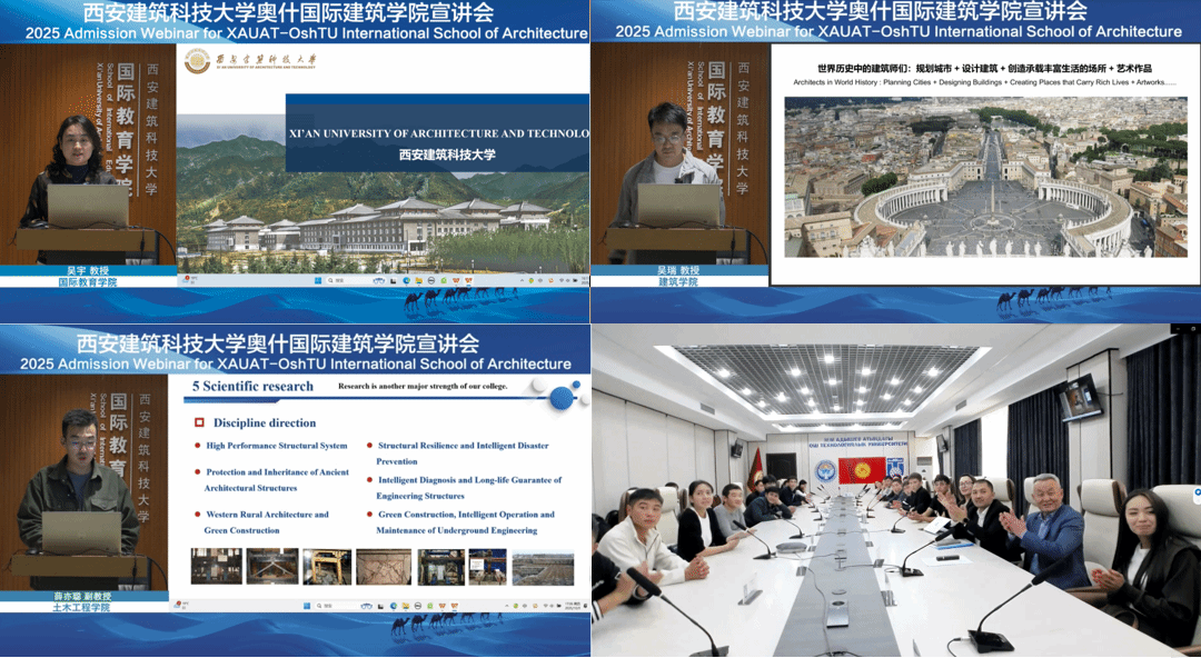 此次宣讲会面向西安建筑科技大学奥什国际建筑学院首批学生召开,不仅为学生搭建了深度了解西安建筑科技大学的平台,更切实为其两年后来华学习奠定了良好基础。后续,两校将聚焦学院培养方案、教师派出及“汉语桥”来华项目持续深化对接。作为中吉教育合作的重要载体,奥什国际建筑学院将为我校扩大国际生规模、拓宽招生渠道、优化生源结构提供实效支撑,助力学校争创“双一流”建设。