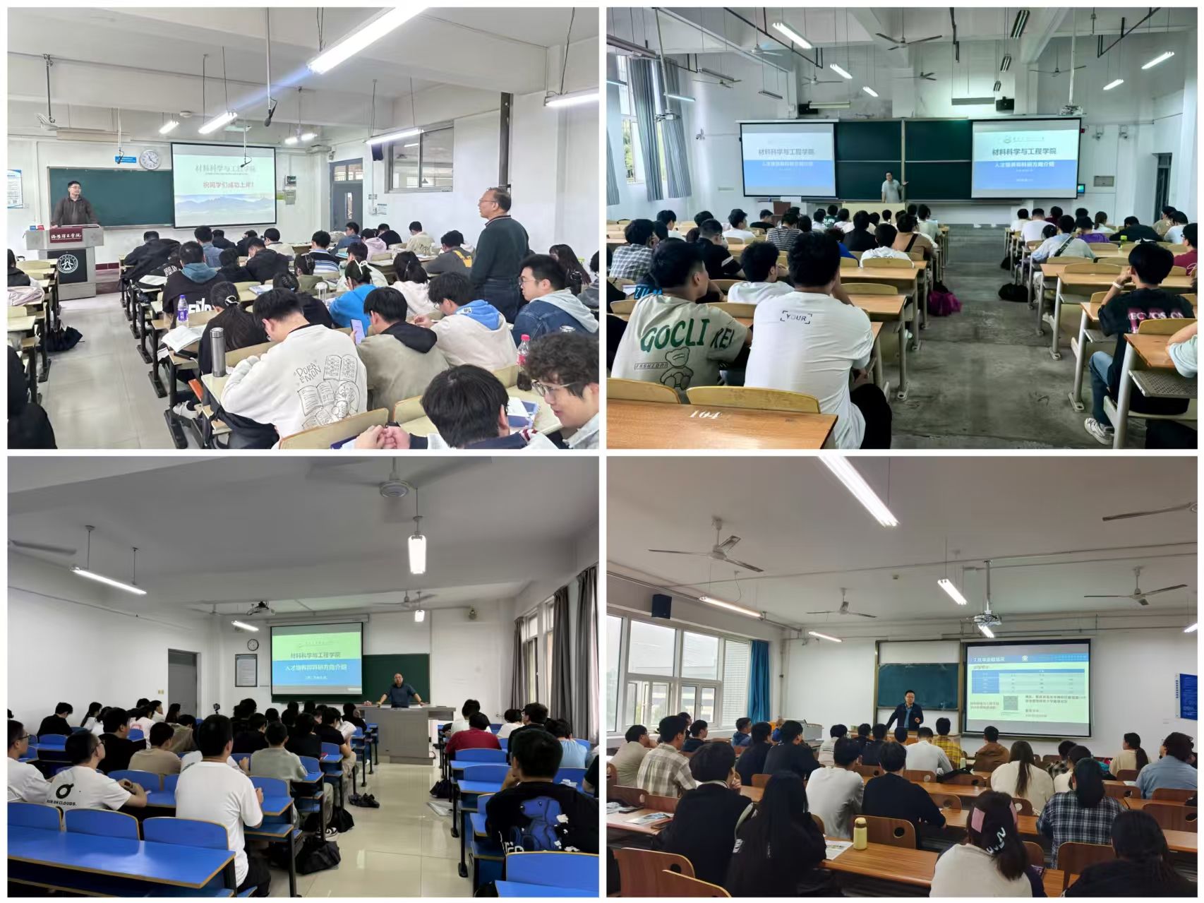宣讲团队由学院领导牵头,联合骨干教师、研究生教学管理人员共同组成,本次活动以“精准对接需求、全面展示优势”为核心,呈现出“覆盖面广、针对性强”的特点,保障宣讲内容的专业性与全面性。在各高校宣讲现场,团队成员介绍学校办学历史、学科底蕴及材料科学与工程学科发展定位、综合实力,重点围绕学科建设成果、科研平台、师资队伍、产学研合作等核心资源进行详细展示;针对考生最关切的招生政策、方向特色、奖助学金体系、就业方向等问题,宣讲团队进行细致讲解,为考研学子提供备考规划建议及报考咨询,宣讲现场,互动环节气氛活跃。