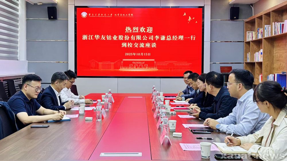 建大新闻网讯 10月15日下午,化学与化工学院与浙江华友钴业股份有限公司在雁塔校区教学大楼109会议室座谈交流。浙江华友钴业股份有限公司集团人力资源管理中心总经理李谦、集团管理学院院长黄超、集团招聘管理部部长张振宇,学校本科生院副院长兼招生工作办公室主任孔德亮、学院领导班子全体成员参加座谈会,会议由学院党委书记张卫华主持。