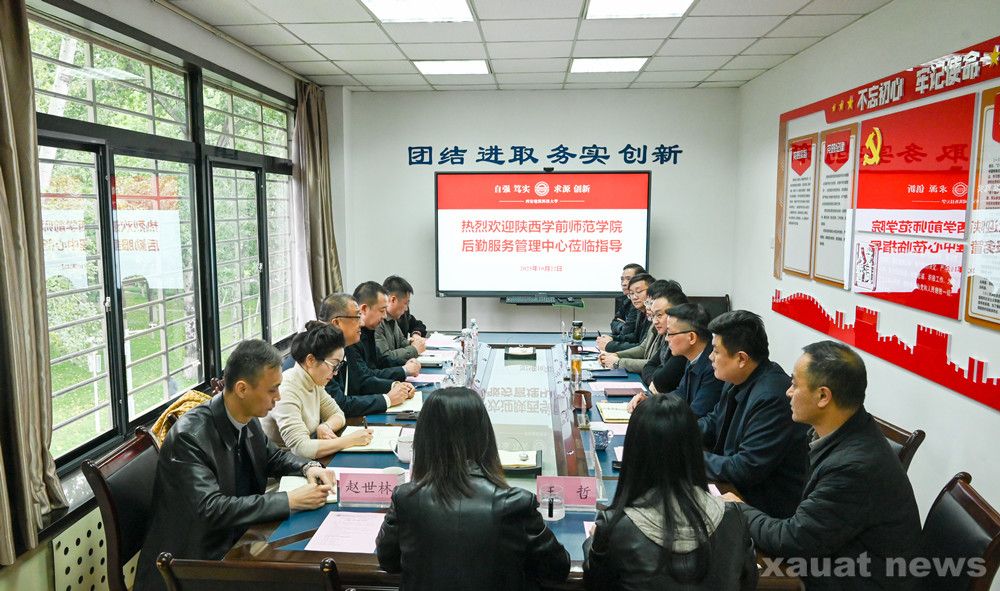 建大新闻网讯 10月22日,陕西学前师范学院后勤服务管理中心主任张宏民一行来我校进行后勤工作专题调研。我校后勤服务中心领导班子及相关负责人参加会议,会议由后勤服务中心总经理郑成华主持。