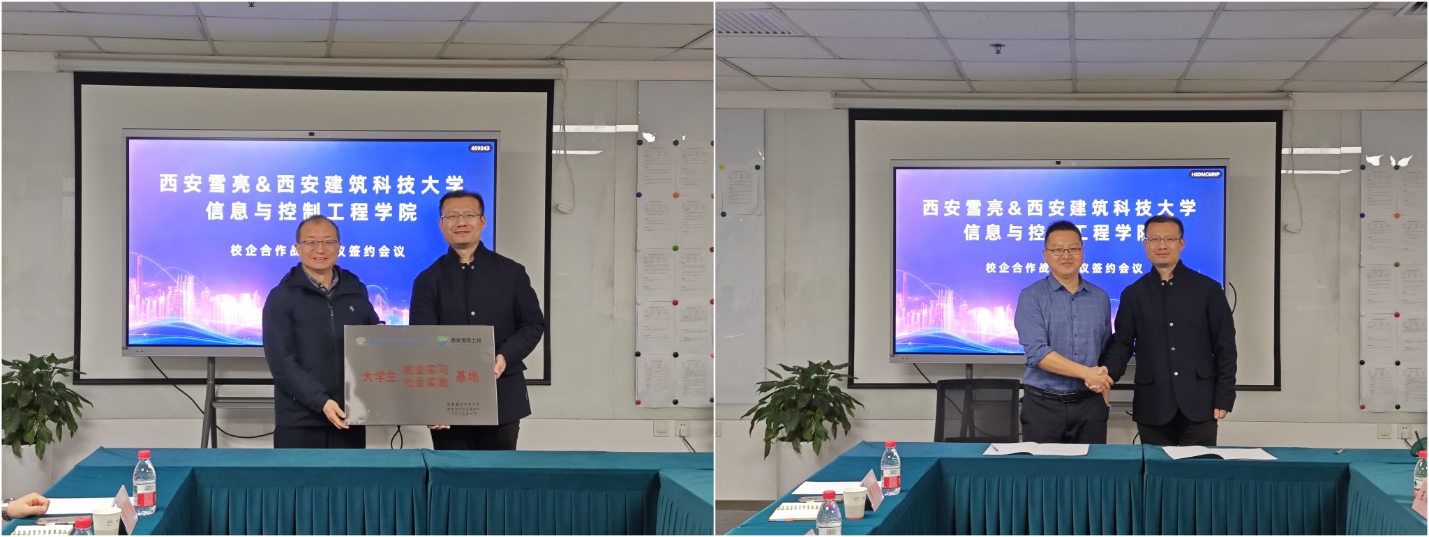 建大新闻网讯 10月22日,信息与控制工程学院与海康威视西安雪亮工程项目管理有限公司举行校企合作签约暨就业实习社会实践基地揭牌仪式。海康威视西安雪亮工程项目管理有限公司副总经理刘伟杰,校企合作经理王语嫣,生态合作经理武雅萌,学院党委书记于军琪,党委副书记、副院长米泽龙出席会议。2026届本科生毕业生辅导员张凡及2026届本硕毕业生代表参加活动。