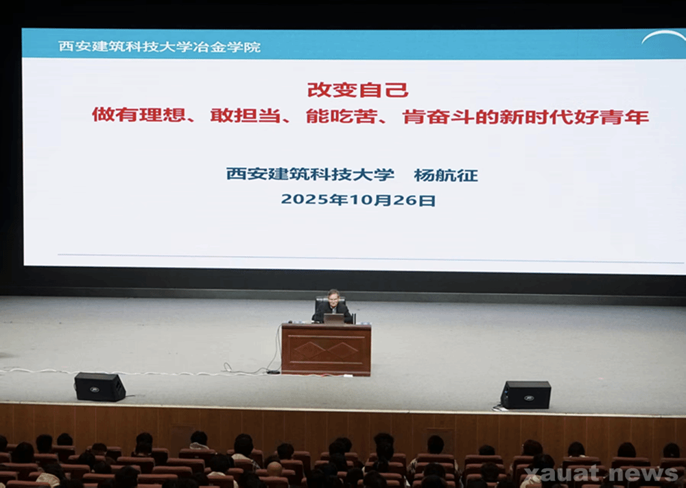 建大新闻网讯 10月26日,冶金工程学院在草堂校区紫阁大礼堂大礼堂举办“有金在冶”大讲堂系列报告会。报告会特邀西安建筑科技大学党委统战部常务副部长杨航征教授主讲,学院草堂校区全体师生参加,报告会由2025级辅导员陈善勇主持。