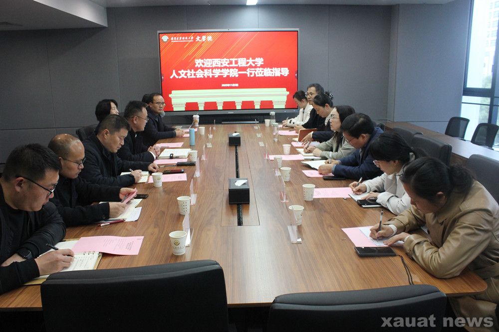 建大新闻网讯 11月5日下午,西安工程大学人文社会科学学院党委书记李喜峰、院长陈莉霞等一行七人来我校文学院调研交流。文学院领导班子部分成员及中文系、行政办公室负责人参加了座谈。会议在雁塔校区意诚科创中心4楼创新会议室举行。
