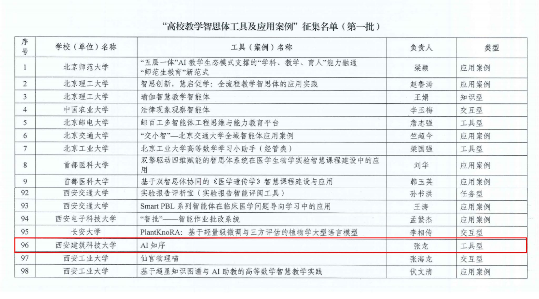 建大新闻网讯 近日,中国高等教育学会公布了“高校教学智思体工具及应用案例”(第一批)征集名单。我校自主研发的“AI知序”平台凭借其在推动生成式人工智能技术与高等教育教学深度融合方面的创新探索与显著成效,成功入选首批案例名单。