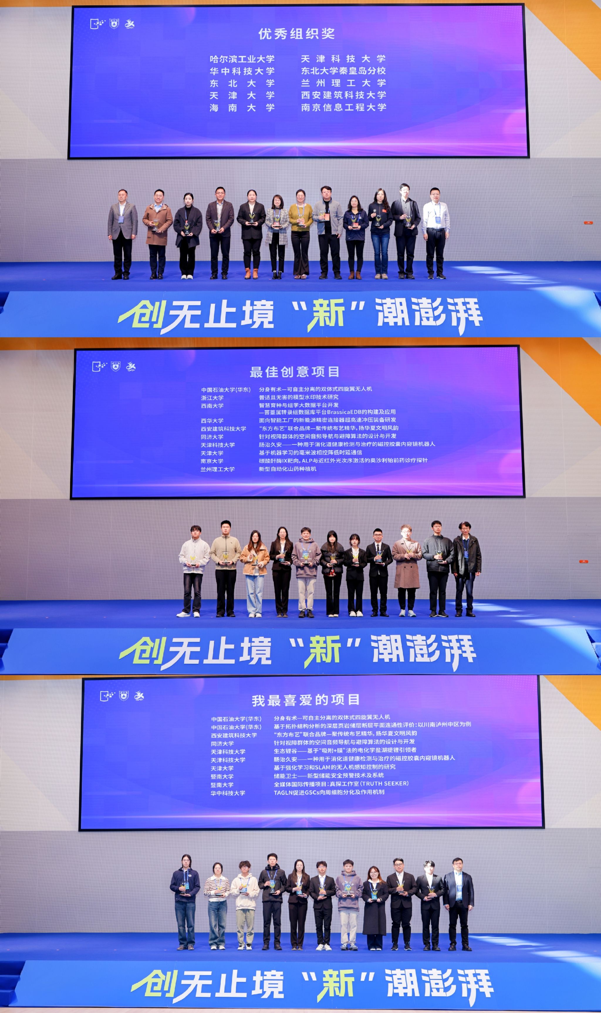 本届年会以“创无止境·‘新’潮澎湃”为主题,共收到部属高校和地方教育主管部门推荐项目1030项,其中学术论文443篇、改革成果项目462项、创业推介项目125项,经专家初评和复选后,最终遴选出510项参会项目,其中学术论文200篇、改革成果展示项目250项、创业推介项目60项。经过激烈角逐,年会评选出“优秀学术论文”20篇、“我最喜爱的项目”20项、“最佳创意项目”20项、“最佳创业项目”12项、“优秀组织奖”15个、“特殊贡献奖”1个。