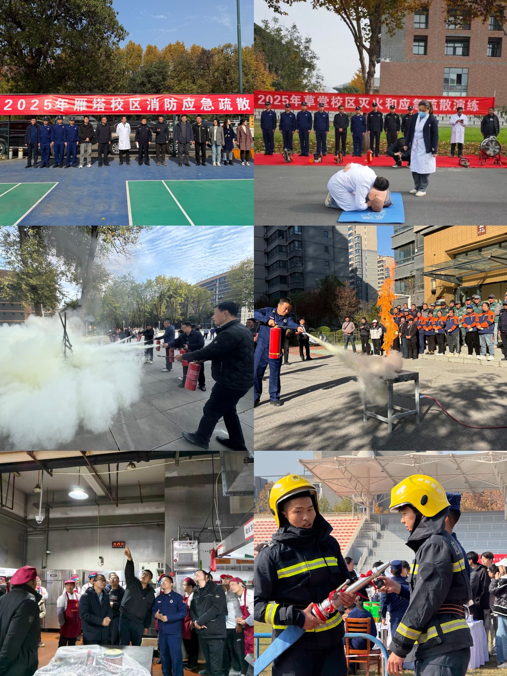 此外,保卫部(处)本月还联合学生工作部(处)、研究生工作部、绿色建筑全国重点实验室、工程建设指挥部、总务处、后勤服务中心、校医院、图书馆等多部门,针对消防重点单位和场所的一线工作人员开展消防安全培训,并组织参训人员实操灭火器扑救初起火灾、消防水带水枪连接与试喷,提升师生扑救初起火灾的能力;在雁塔校区学生公寓、附属中学教学楼、青教公寓和草堂校区学生公寓等地开展消防应急疏散演练,提升师生疏散逃生的能力;持续通过微信公众号、展板、横幅、宣传单等形式开展消防知识宣传教育,营造浓厚的校园安全文化氛围。