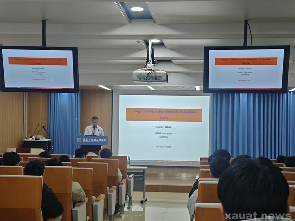 在专题讲座环节,Branko Ristic 教授以“Target tracking in the framework of possibility theory”为题,从可能性理论的核心原理与数学建模逻辑切入,系统梳理了该理论在目标跟踪领域的起源、发展脉络及国际研究前沿。他结合自身研究经历,深入剖析了传统概率统计方法在复杂环境(如多目标交叉、强噪声干扰、数据异构缺失)下的技术瓶颈,重点阐述了可能性理论在不确定性建模、模糊信息处理、鲁棒性优化等方面的独特优势。讲座互动环节,Branko Ristic教授与现场师生互动频繁,思维的碰撞让在场师生深受启发。