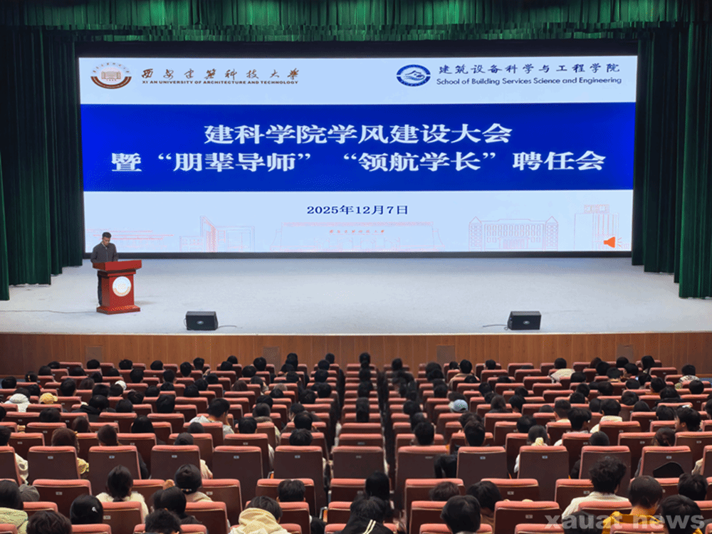 建大新闻网讯 为深入推进优良学风建设,健全“三全育人”工作机制,充分发挥朋辈引领在育人体系中的重要作用,12月7日,建筑设备科学与工程学院在紫阁大礼堂召开本科生学风建设大会暨朋辈导师和领航学长聘任仪式。学院党委副书记、副院长叶磊,学工办主任、博士生辅导员朱海琦,学院草堂校区辅导员,全体2024级、2025级本科生参会。会议由2025级本科生辅导员李振主持。