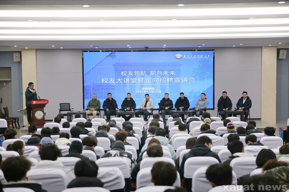 建大新闻网讯 12月12日,体育学院在草堂校区学府城6-301报告厅召开“校友领航,职向未来”校友大讲堂暨定向招聘宣讲会。学院副院长衡阳、十位优秀校友代表、专业教研室主任贾丽欣、党支部书记李峰,辅导员及全体学生参加活动。活动由学院党总支副书记尉庆国主持。