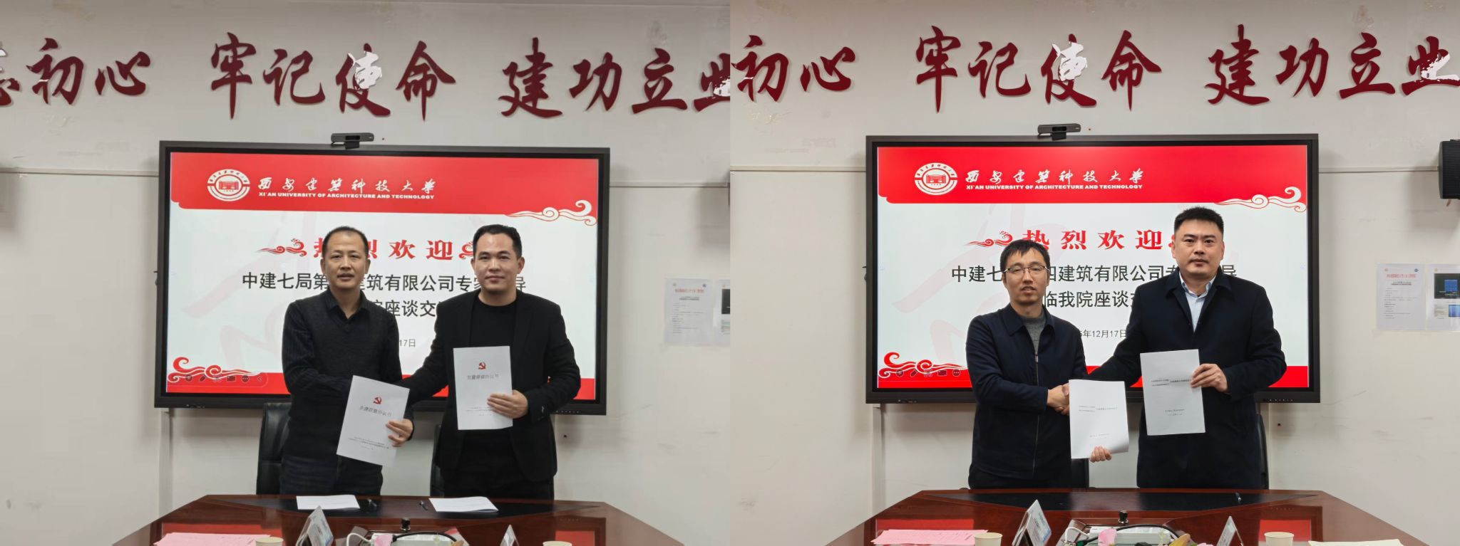 座谈会上,土木工程学院与中建七局四公司签署了《科研合作框架协议》,智能建造教研室党支部与中建七局四公司总部第五党支部签署了《党建联建协议》。后期双方将在党组织共建、科技研发、项目合作、实习实践、人才培养等方面开展长期合作。