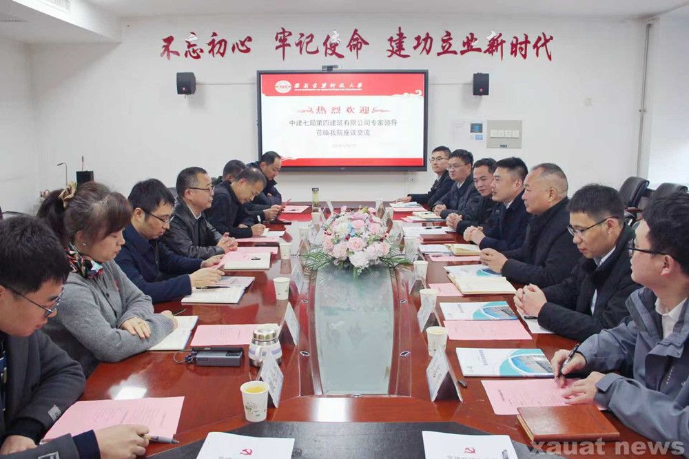 霍继炜表示西安建筑科技大学土木工程学院科研实力雄厚、人才资源丰富,与企业发展需求高度契合,希望通过共建平台,促进产学研深度融合,加快解决工程技术难题,培养适应行业发展的创新型人才。项萌简要介绍了中建七局四公司的党建情况及人才需求,牛彦平介绍了中建七局四公司在科技发展领域取得的成就及科研合作需求。