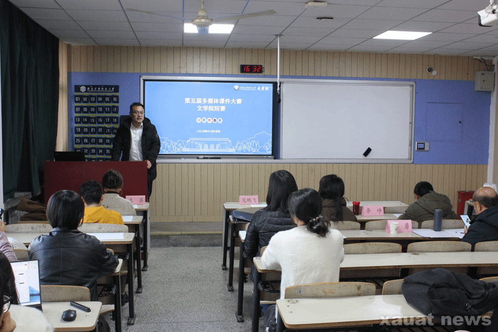 建大新闻网讯 为深化教学改革,推动信息技术与教育教学深度融合,提升教师多媒体课件制作与应用水平,文学院于12月5日举办了多媒体课件大赛院级选拔赛。教师发展研究院副院长张宇,文学院督导组李峥、曹勇、李红梅,教授委员会委员秦艳萍共同组成评审团,对参赛作品进行评审。学院院长范鹏飞出席活动并致辞。大赛由学院副院长达芸主持。