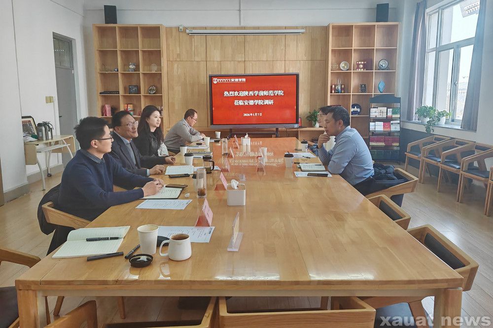 建大新闻网讯 1月7日下午,陕西学前师范学院国际交流与对外合作处处长潘炳超、教师马杰来我校安德学院调研,就中外合作办学的申报工作开展专题研讨。安德学院领导班子、国际合作交流处及学院相关科室负责人参加会议,会议由副院长郑涛主持。