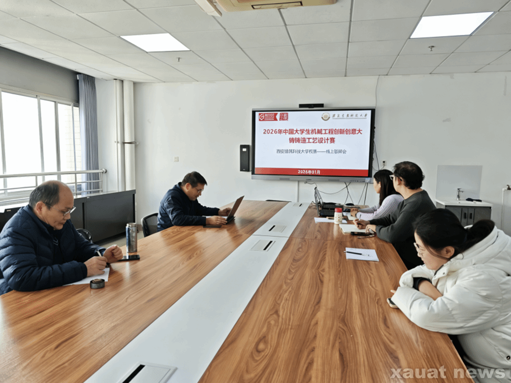 建大新闻网讯 1月28日,2026年中国大学生机械工程创新创意大赛——铸造工艺设计赛校级答辩评审会在雁塔校区工科楼1102室举办。航空工业庆安集团高级工程师王玉峰、西安理工大学教授徐春杰、西安洪盛冶金科技有限公司总经理宋锋涛担任本届选拔赛评委,冶金工程学院副院长杨西荣、竞赛负责教师杨蕾以及各队伍指导教师、竞赛相关专业学生参加本次答辩评审会。