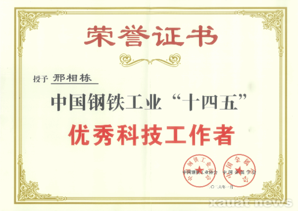 建大新闻网讯 近日, 中国钢铁工业协会第十三次会员大会在北京召开。大会全面总结2025年钢铁行业运行发展情况、梳理了“十四五”时期高质量发展成效,提出“十五五”行业发展方向和2026年重点工作任务。会上,正式发布了“十四五”期间科技工作先进单位、优秀个人和重大成果名单。我校冶金工程学院邢相栋教授获评中国钢铁工业“十四五”优秀科技工作者。