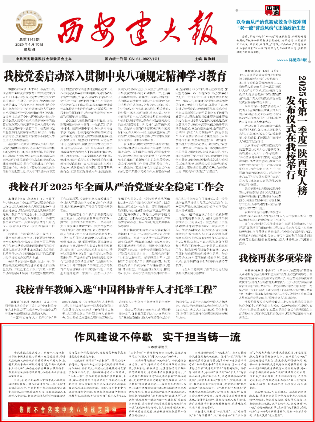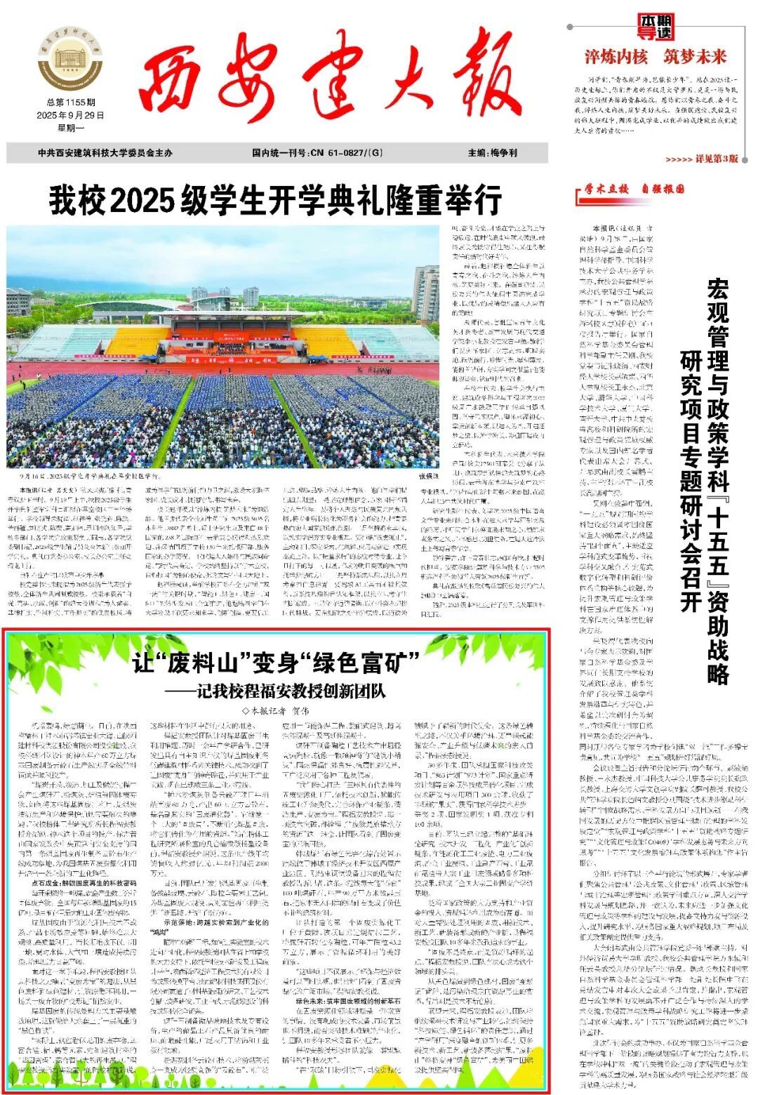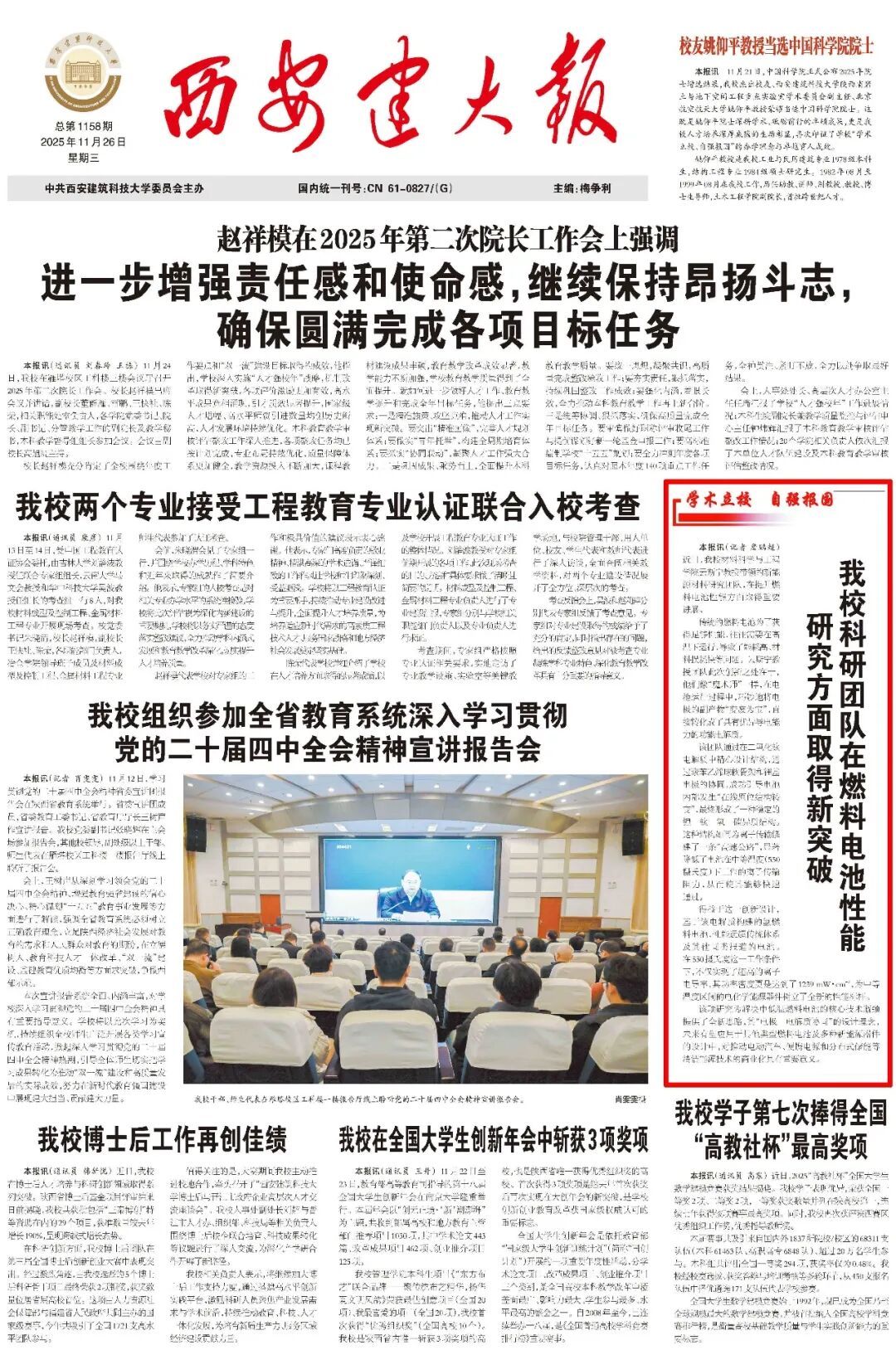 版面类:《西安建大报》总第1159-1160期第1版(责编:魏彦民)