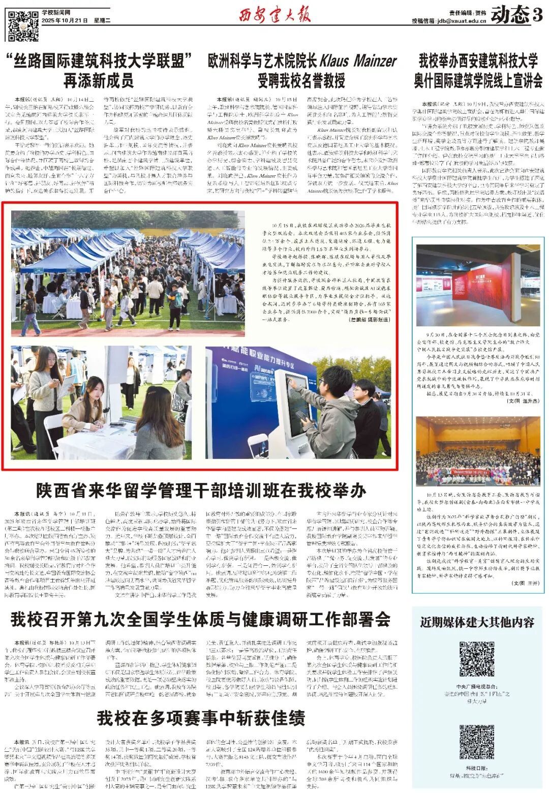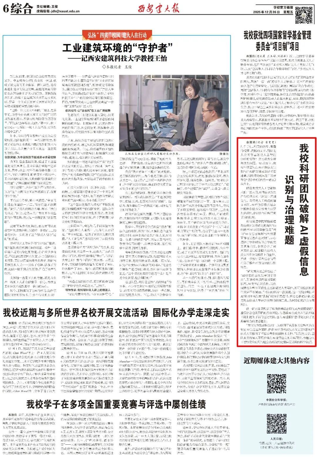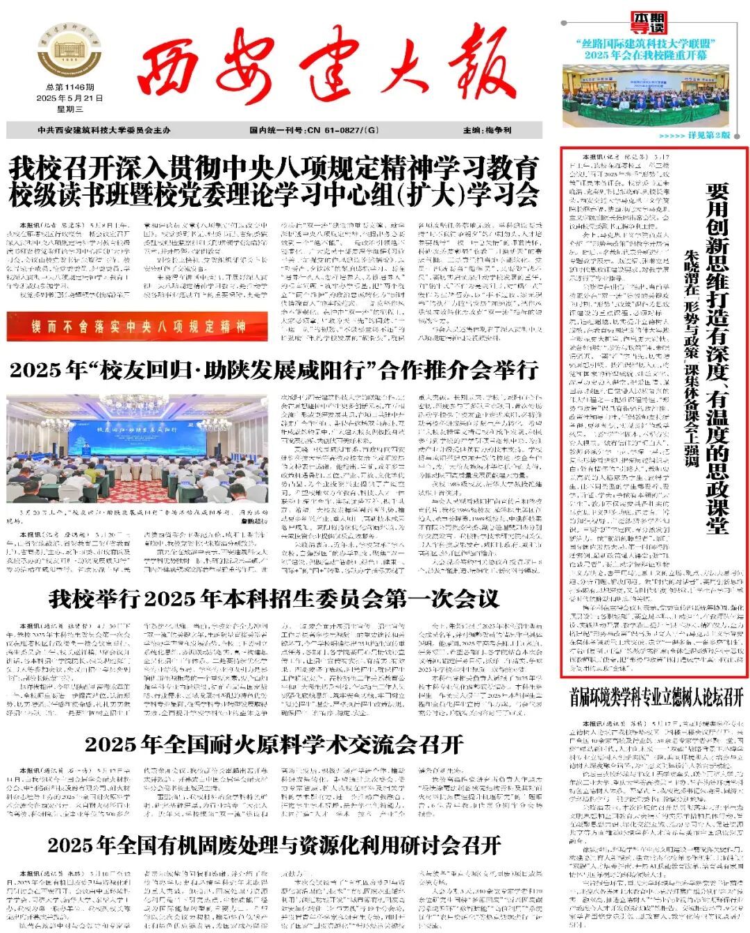 版面类:《西安建大报》总第1159-1160期第1版(责编:魏彦民)