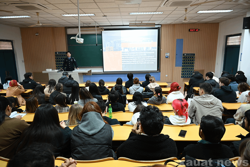 建大新闻网讯 为贯彻落实春季校园安全工作要求,进一步规范和强化国际学生校园管理,3月23日,国际教育学院在雁塔校区南阶教室组织召开2026年春季国际学生“来华第一课”安全教育宣讲会。西安市公安局出入境管理局一级警长付诗岩、四级警长崔玖和民警田毅,国际教育学院留学生管理人员和在校国际学生参加会议。会议由留学生管理办公室主任马宁主持。