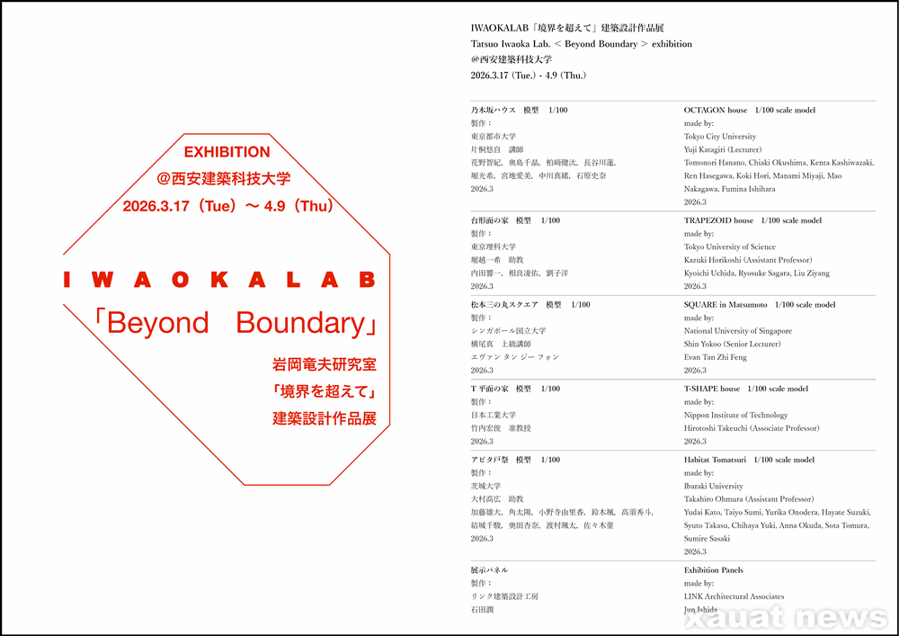 本次“从住宅到城市”展览,集中展示了岩岡竜夫教授多年来的代表性住宅作品及设计思想,由其团队(横尾真、石田闰、片桐悠自等)与建筑学院王毛真、吴瑞副教授及其研究生合作策划、制作与搭建,将持续至2026年5月30日。展览通过实物模型、设计图纸等形式,阐释当代城市语境下居住空间的多元构成逻辑,为师生提供国际化的学术交流视角。