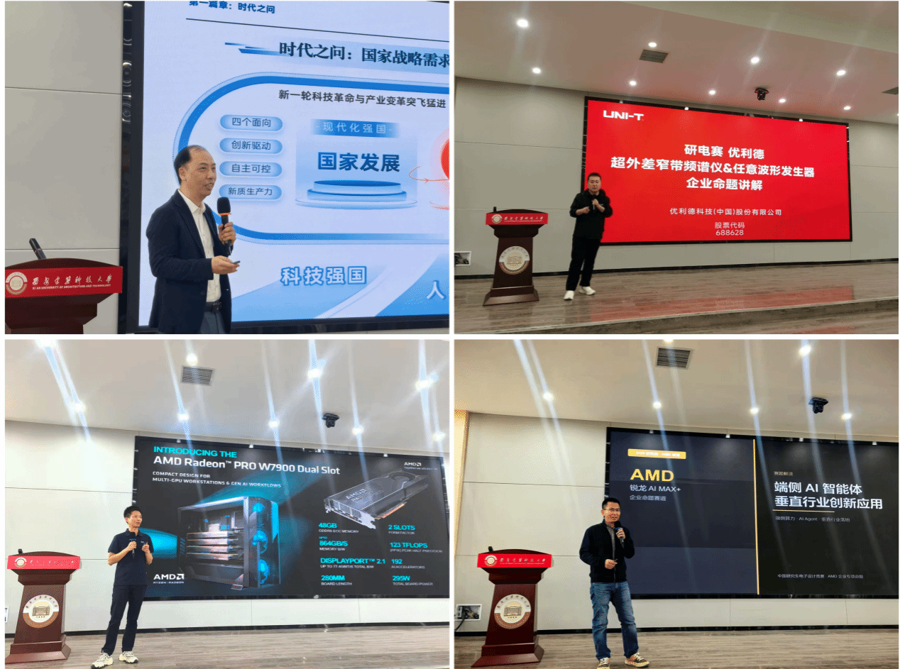 AMD Client平台验证部总监颜士相、工程师陈力分别介绍了AMD在端侧AI、处理器与算力平台的前沿技术与生态布局,重点解读企业命题方向,并介绍了企业人才储备计划与校招绿色通道,为同学们开展AI与电子系统融合创新提供技术支撑与就业通路。