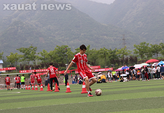 一场团体比赛的胜利离不开每位成员的出色表现,脚步更替,方向变换,双眼紧盯,心里判断,运动员们用细心和专注,踢着本该直行的球绕过一个个路障,顺利将球送至队友的脚下。