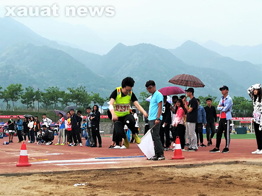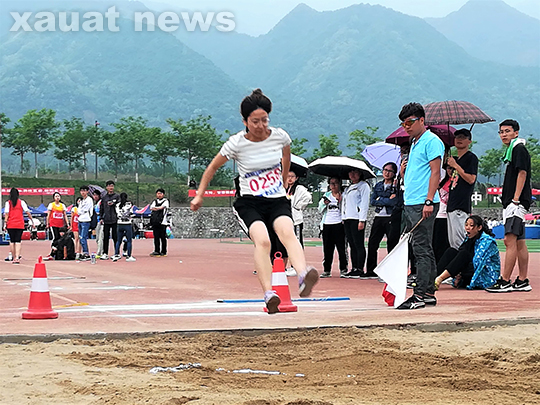 山脚下的雨说下就下,明明早上还艳阳高照,一个中午的功夫,这雨就压了下来。沙坑湿了些,表皮的红沙浸水之后颜色深了许多,沙坑边缘跳远的姑娘们一次次地跃入沙坑,脚下磅礴的力量好似势要揭开这层外皮一般。