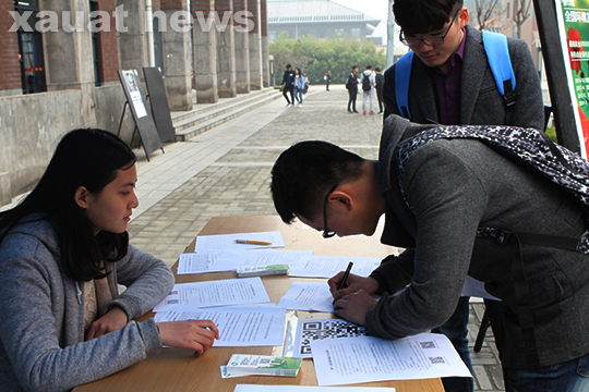雁塔校区同学手持宣传海报