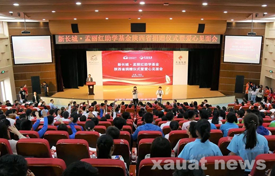 大会伊始,陕西师范大学游旭群校长发表了欢迎致辞,随后到场嘉宾通过视频短片《爱的足迹》对“新长城·孟丽红助学基金”有了一个粗略的认识。紧接着中国扶贫基金会常务副秘书长陈红涛先生从“新长城教育理念与实践”、“祈福集团十五年爱心接力”、“陕西高校受助情况”三个方面来对“新长城·孟丽红助学基金”进行了进一步的介绍。随后,中国扶贫基金会郑文凯理事长接受孟丽红女士的捐赠。项目高校捐赠仪式、受益学生结对卡发放仪式也顺利完成。陕西教育厅总会计师刘宝华先生代表受益学校向孟女士赠送了荣誉牌匾。其后的受益学生代表发言,真情实感表达了自己的感恩之情,并表示自己会积极进取、努力学习来回报社会给予的温情。