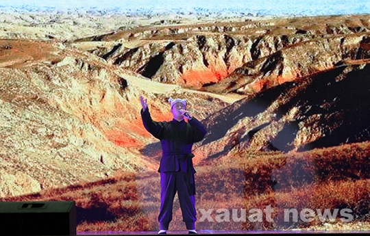 演出开场之前,小礼堂门前的“狗头枣”和精美的宣传册就吸引了许多来往师生的目光,此次演出充满着热情喜庆的氛围。接着,本次演出便在高亢、嘹亮的锁呐声中了序幕。歌伴舞《诉说》、道情表演唱《唱道情》、情景舞蹈《红色记忆》,陕北民俗歌舞《迎亲》,陕北民歌大联唱《信天游飞出心窝窝》,陕北说书《北京知青回延川》等节目依次献演,来自延川县文体广电局、县文化旅游(集团)有限责任公司、县山花演艺公司的近百名演员带着黄土高塬的泥土芳香,将大美延川的神奇画卷展现在观众面前,现场气氛一次次被推向高潮。