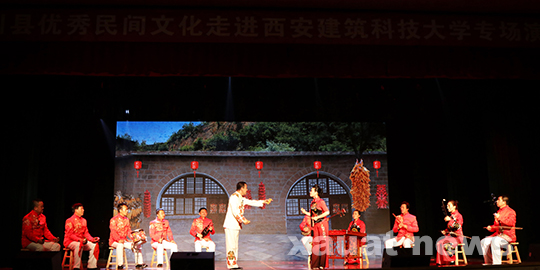 3月20日晚七时整,“弘扬传统文化 培育核心价值——延川优秀民间文化进高校巡演”活动在我校草堂校区南山小礼堂拉开帷幕。这台精彩纷呈的文艺演出已经走进陕西多所高校,为广大师生奉献了一场视听文化盛宴。