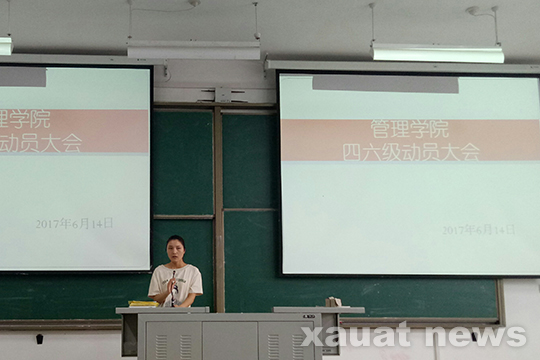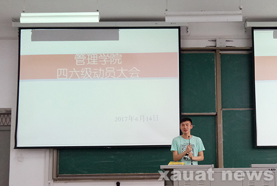为了营造良好学风,号召全体学生自觉遵守考试纪律,坚决杜绝考试作弊行为,诚信做人、诚信做事、诚信应考,管理学院英语四六级动员大会于6月14日下午在学府城12栋201教室成功召开。管理学院2015级辅导员田莹、2016级辅导员吉洪泽以及管理学院报名参加此次英语四六级考试的所有考生参加了此次动员大会。