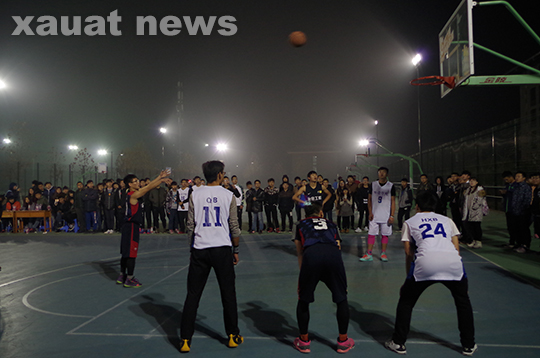 第三节开端,冶金工程学院队员经过调整战术,全力打好配合,快攻猛打,充分应用弹跳力优势稳住篮板,屡次抢到对手的篮板球。10号球员安良锋通过与其他队员的默契配合屡进三分,渐渐拉大与机电学院的比分差距。