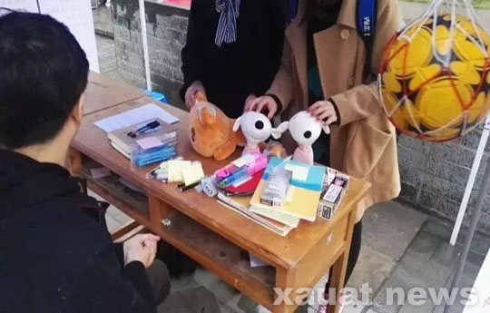 活动开始后,涌来了一大批捐献爱心物资的同学们,捐赠的物品中笔记本,书和水彩笔较多,其次是玩具熊,玩具狗,篮球和足球等等。同学们捐献了孩子们写在心愿单上的物品,以及大家自发捐赠的爱心物品,并将写有自己与被捐赠者信息的便利贴附了在爱心物品上。活动现场气氛热烈,更多的同学们被本次爱心筹集活动的氛围感染,都踊跃地献上自己的一份爱心,向孩子们传递来自我校大学生的温暖。
