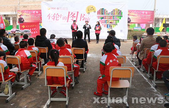 第二季“车轮上的图书馆”活动,携手包括我校在内的省内10所知名高校的研究生支教团,将为包括我校研究生支教团支教服务学校之一的洋县马畅初级中学在内的十所省内贫困地区中小学,建立流动“爱心书屋”,为孩子们带去精神的食粮。我校研究生支教团代表也来到现场,从主办方代表的手中接过“车轮上的图书馆”标志牌。活动中丰富多彩的文艺汇演、轻松愉快的游戏互动,让志愿者和学生们度过了一个愉快的上午。