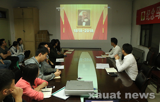 会上,与会师生通过观看视频学习了习总书记在纪念马克思诞辰200周年大会上的重要讲话精神,深刻表达了对马克思的缅怀和对马克思主义的信仰。