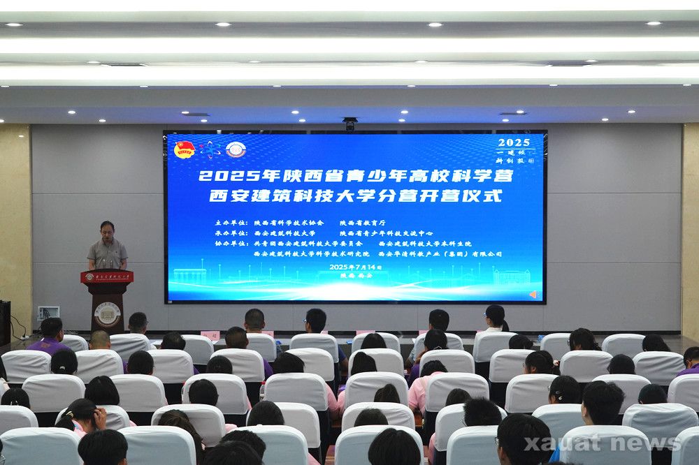 建大新闻网讯 7月14日上午,2025年陕西省青少年高校科学营西安建筑科技大学分营在我校草堂校区开营。校团委书记孙宏哲、西安华清科教产业(集团)有限公司党委书记魏井福、本科生院副院长兼招生工作办公室主任孔德亮、科学技术研究院副院长刘世锋以及来自宝鸡、咸阳、渭南、延安、汉中等5个市县的科协领队和5所中学的60名师生参加开营仪式。