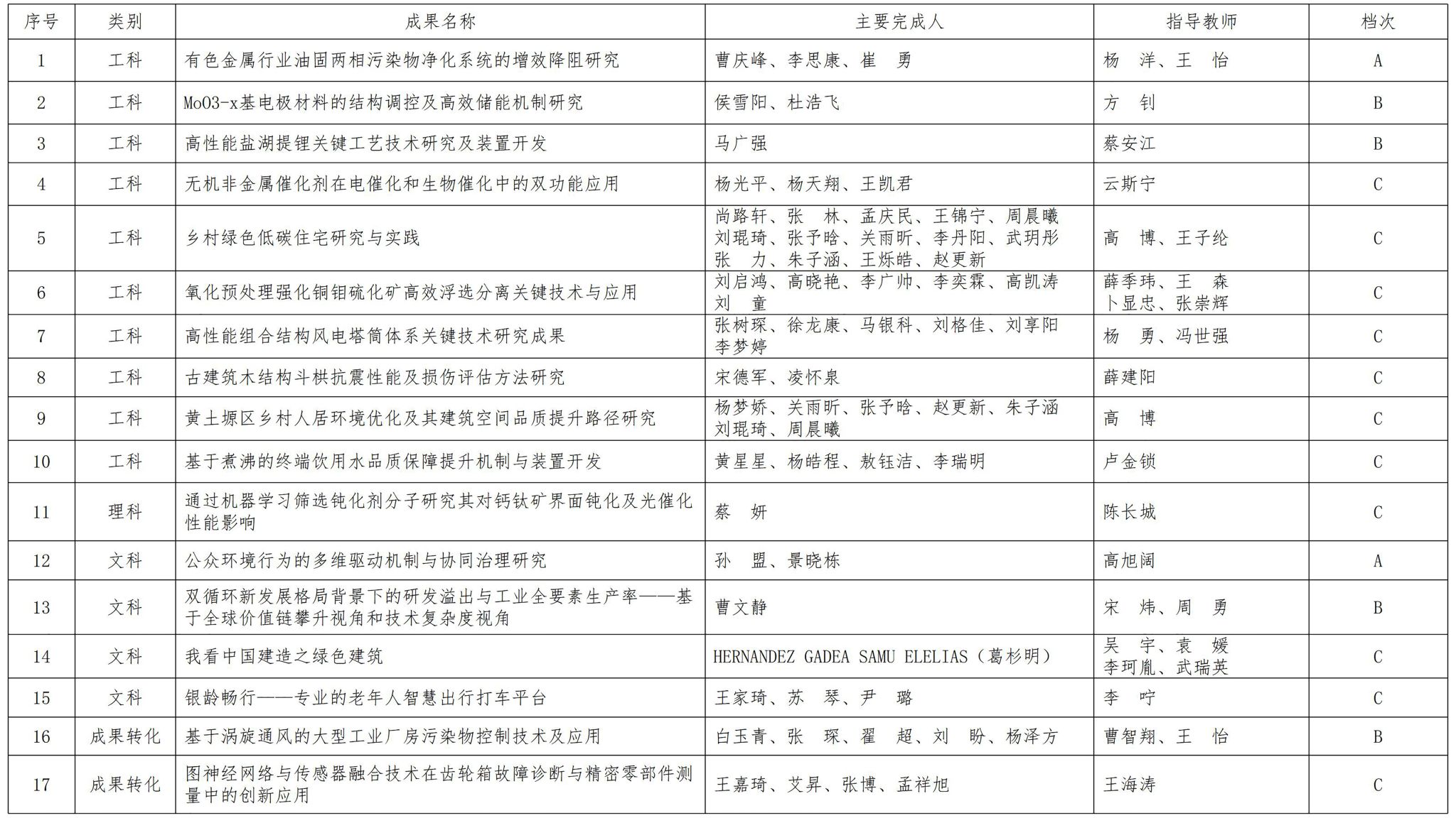西安建筑科技大学陕西省第九届研究生创新成果展高质量成果名单
