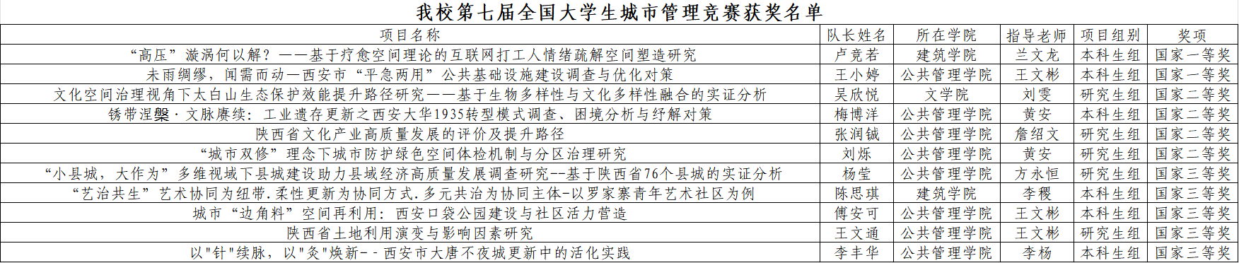 我校高度重视此次赛事,积极组织动员,组建跨院系参赛团队26支。经过层层选拔与激烈角逐,11支队伍入围决赛。最终,我校学子凭借扎实的专业功底、出色的实践能力与创新思维,斩获一等奖2项、二等奖4项、三等奖5项,充分展现了我校学子在城市管理领域的综合素养与竞技风采。